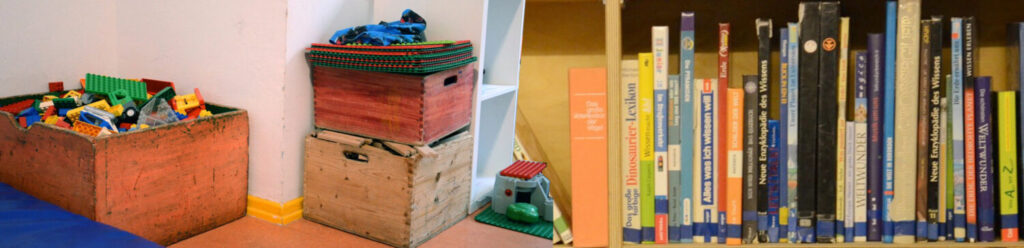 Vor dem Gebäude ist ein kleiner Hof und Vorgarten mit Sandkiste, Kletterbäumen und Hochsitz. Alle Räume und deren Inventar sind grundsätzlich und jederzeit für alle Kinder und für alle Pädagog*innen zugänglich, aber nicht für die Eltern während der Schulzeit.